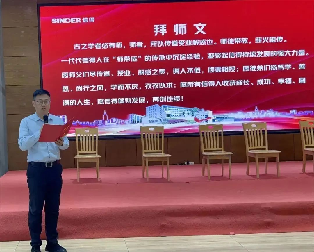 隨后,信得科技常務(wù)副總裁董濤先生為此次儀式誦讀《拜師文》,《拜師文》中提到一代代信得人將在“師帶徒”的傳承中沉淀經(jīng)驗(yàn),凝聚成信得持續(xù)發(fā)展的強(qiáng)大力量,在師徒傳承中,愿師傅們盡傳道、授業(yè)、解惑之責(zé),誨人不倦,傾囊相授;愿徒弟們揚(yáng)篤學(xué)、善思、尚行之風(fēng),學(xué)而不厭,孜孜以求。