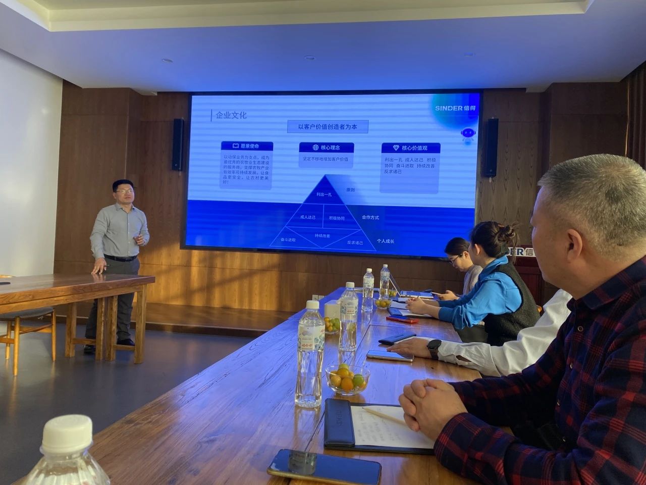 各板塊負(fù)責(zé)人向來訪領(lǐng)導(dǎo)老師們?cè)敿?xì)介紹了信得的硬件設(shè)備、生產(chǎn)工藝、生產(chǎn)能力及生物安全系統(tǒng)的應(yīng)用情況。各位領(lǐng)導(dǎo)邊看、邊聽、邊交流,對(duì)信得科技的產(chǎn)品工藝、自動(dòng)化生產(chǎn)能力以及企業(yè)/傳統(tǒng)文化有了深入了解。
