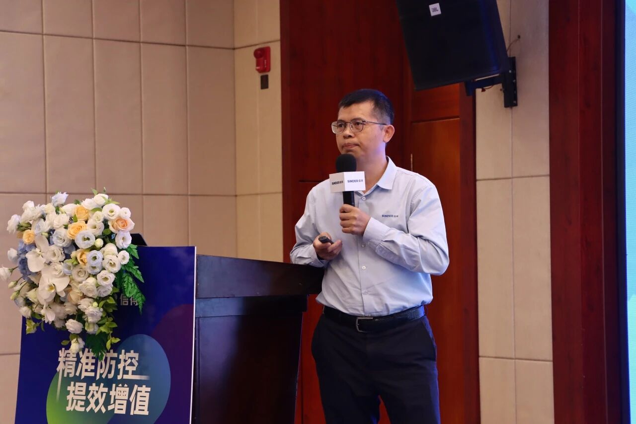 閔祥平副總裁在致辭中向各位來(lái)賓表示熱烈歡迎,并以“精準(zhǔn)防控支持養(yǎng)殖業(yè)高效率成長(zhǎng)”為主題,系統(tǒng)闡釋了信得精準(zhǔn)防控理念及其價(jià)值。他表示,精準(zhǔn)防控通過(guò)精準(zhǔn)檢測(cè)、精準(zhǔn)定制、精準(zhǔn)評(píng)價(jià) “三位一體” 的閉環(huán)管理,可掌握疾病的病因、病原、流行趨勢(shì)和發(fā)病規(guī)律,從而通過(guò)定制化的解決方案,實(shí)現(xiàn)養(yǎng)殖過(guò)程中關(guān)鍵疾病的精準(zhǔn)控制,為客戶帶來(lái)確定性的最佳價(jià)值,提升養(yǎng)殖效益。閔總強(qiáng)調(diào),信得將圍繞 “精準(zhǔn)防控”“最佳價(jià)值”“確定性”“有效率” 四個(gè)關(guān)鍵詞,持續(xù)為客戶提供有效率的確定性最佳價(jià)值,助力國(guó)雞行業(yè)同仁提效增值。